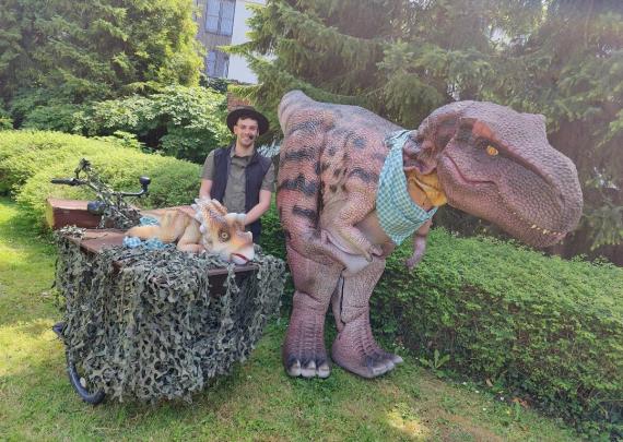 Onze baby-dino, T-rex en dinoranger gaan op pad en bezorgen groot en klein een